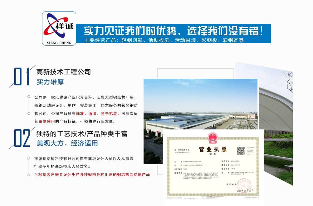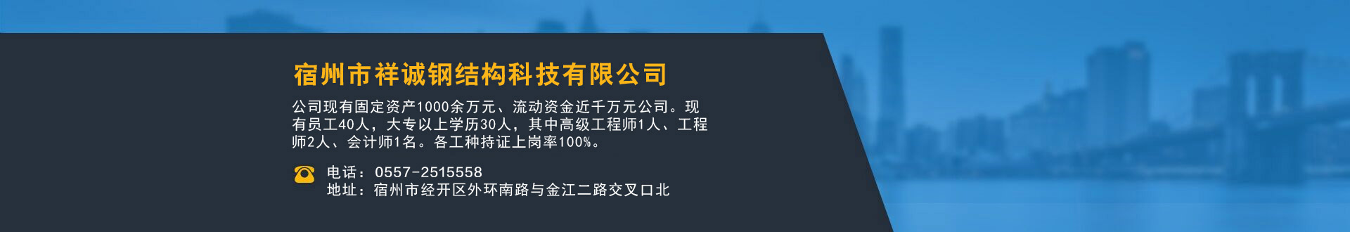 宿州市祥誠鋼結(jié)構(gòu)科技有限公司位于宿州市經(jīng)開區(qū)外環(huán)南路與金江二路交叉口北,公司是一家以建設(shè)產(chǎn)業(yè)化為目標(biāo),匯集大型鋼結(jié)構(gòu)廠房、彩鋼活動(dòng)房設(shè)計(jì)、制作、安裝施工一條龍服務(wù)的知名鋼結(jié)構(gòu)公司。公司現(xiàn)有固定資產(chǎn)1000余萬元、流動(dòng)資金近千萬元公司。現(xiàn)有員工40人,大專以上學(xué)歷30人,其中高級(jí)工程師1人、工程師2人、會(huì)計(jì)師1名。各工種持證上崗率100%。高效化的年青團(tuán)隊(duì)為公司帶來了蓬勃發(fā)展的動(dòng)力,全體員工以務(wù)實(shí)的態(tài)度,拼搏的精神,創(chuàng)造著企業(yè)的每一天。      公司組織結(jié)構(gòu)嚴(yán)格按現(xiàn)代企業(yè)制度設(shè)計(jì),管理機(jī)構(gòu)設(shè)置合理,制度完善,各部門分工明確...